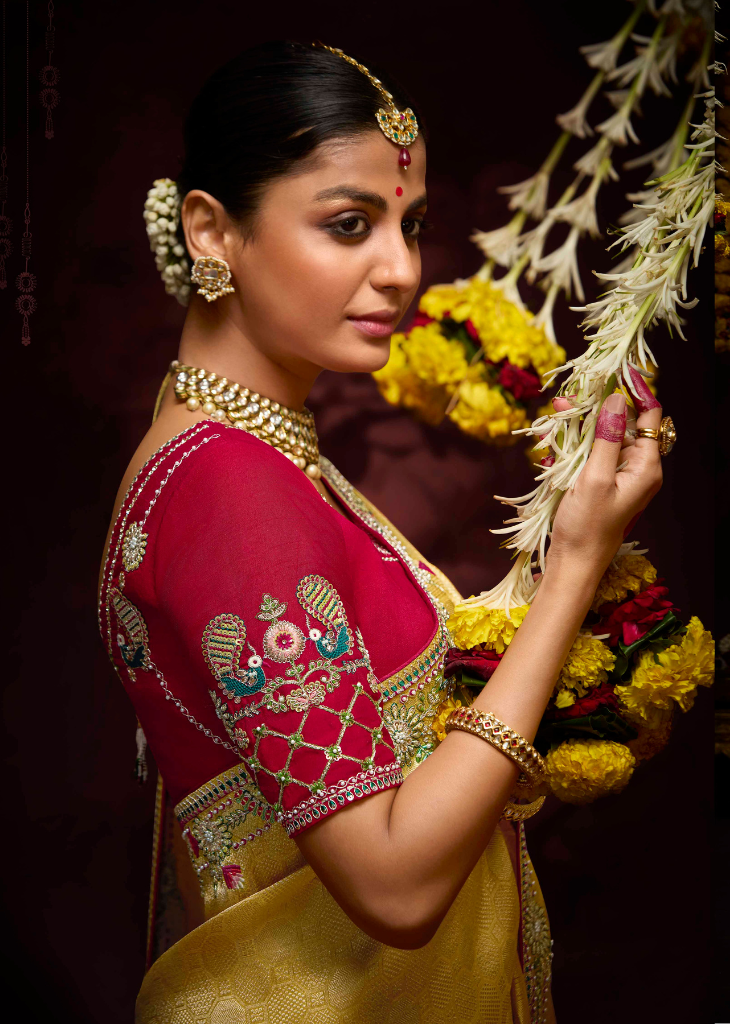 | Saree Fabric: | Pure Banarasi Kanjivaram Silk with Sequin, Stone, Embroidery, Pearl, Zari Weaving & Khatli Work |